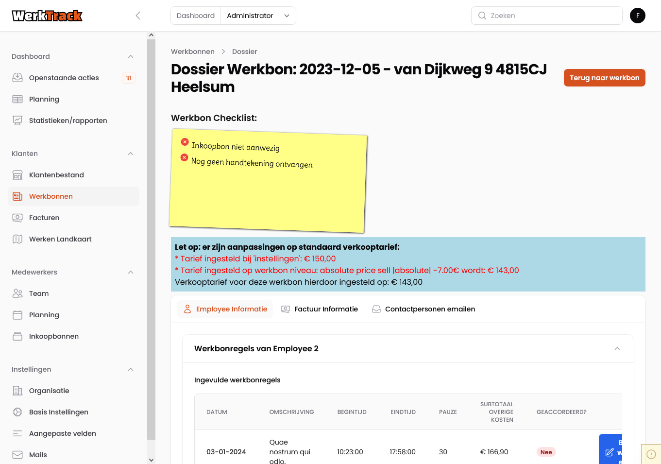 Ook zonder onze hulp kunt u het werkbonsysteem aanpassen aan uw wensen. Met onze flexibele instellingen kunt u het systeem aanpassen aan uw bedrijf.